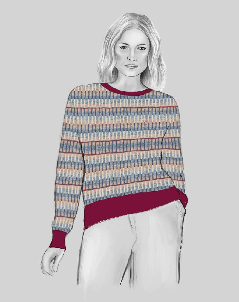By incorporating broken patterns into my design, I reflected the interplay between natural erosion and human-made structures, capturing the essence of timelessness - Brora's key ethos. The final jumper design combined subtle yet meaningful details, translating the interrupted and weathered patterns into a wearable piece that connects the past and present.